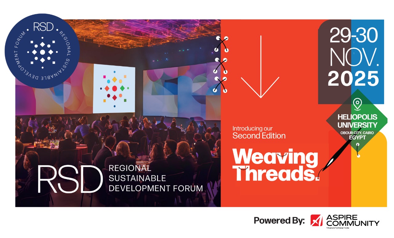 أعلنت «أسباير – «Aspire للتنمية المجتمعية، والتابعة لـ «أسباير للاستشارات الدولية «عن انطلاق النسخة الثانية من المنتدى الإقليمي للتنمية المستدامة “Regional Sustainable Development Forum (RSD)” ، برعاية وزارتي الشباب والرياضة، والبيئة، والذي من المقرر انعقاده في القاهرة خلال الفترة من 29 إلى 30 نوفمبر 2025، بجامعة هليوبوليس للتنمية المستدامة بطريق بلبيس، وذلك بحضور وزاري رفيع المستوى إلى جانب مشاركة نخبة من ممثلي الجهات الحكومية والخاصة، والمنظمات العربية والإقليمية والدولية المعنية بقضايا التنمية المستدامة.
