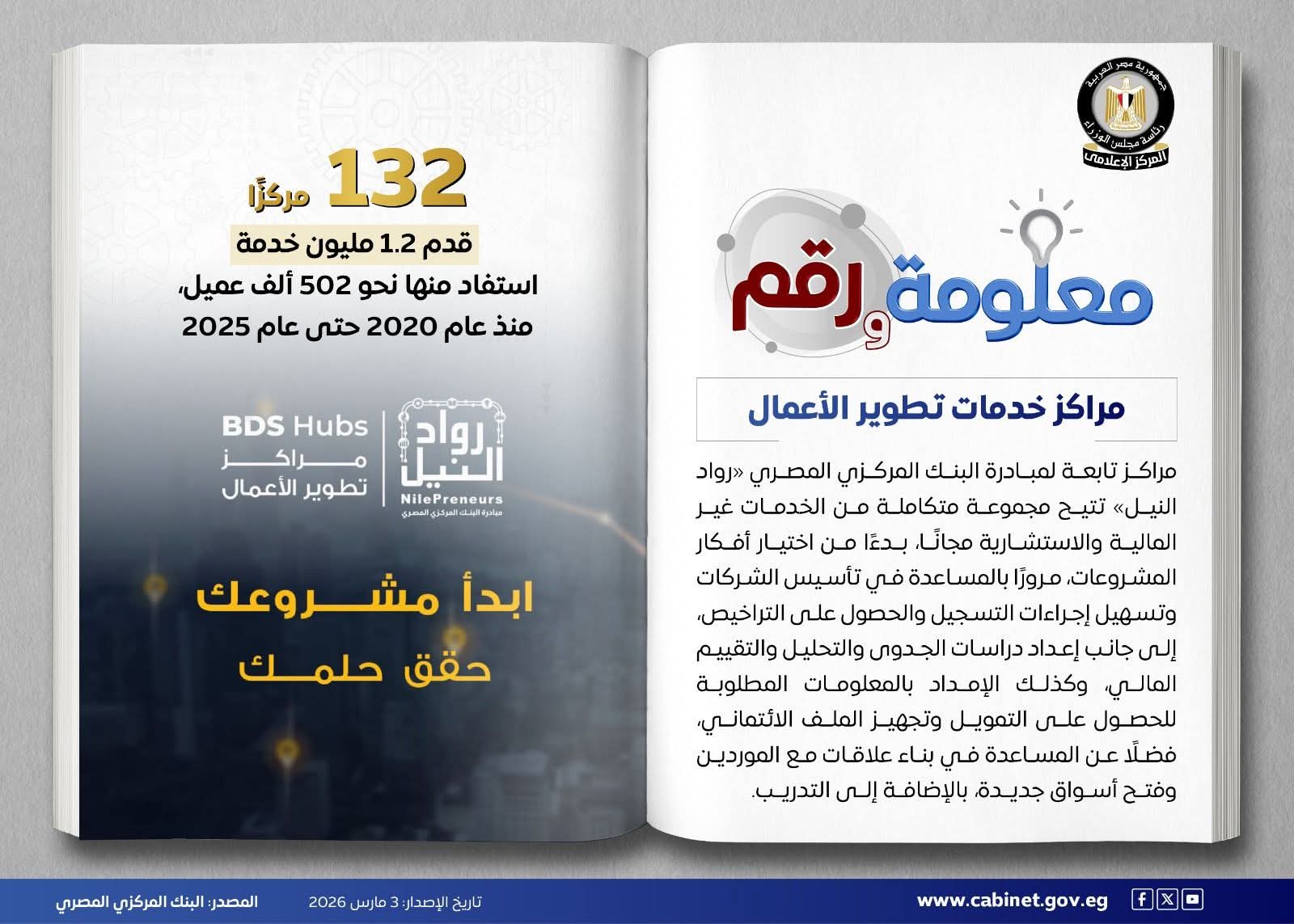 في إطار جهود البنك المركزي المصري لدعم رواد الأعمال وأصحاب المشروعات المتوسطة والصغيرة ومتناهية الصغر، واصلت مراكز خدمات تطوير الأعمال التابعة لمبادرة «رواد النيل» تحقيق نتائج ملموسة، حيث بلغ عددها 132 مركزًا على مستوى الجمهورية.