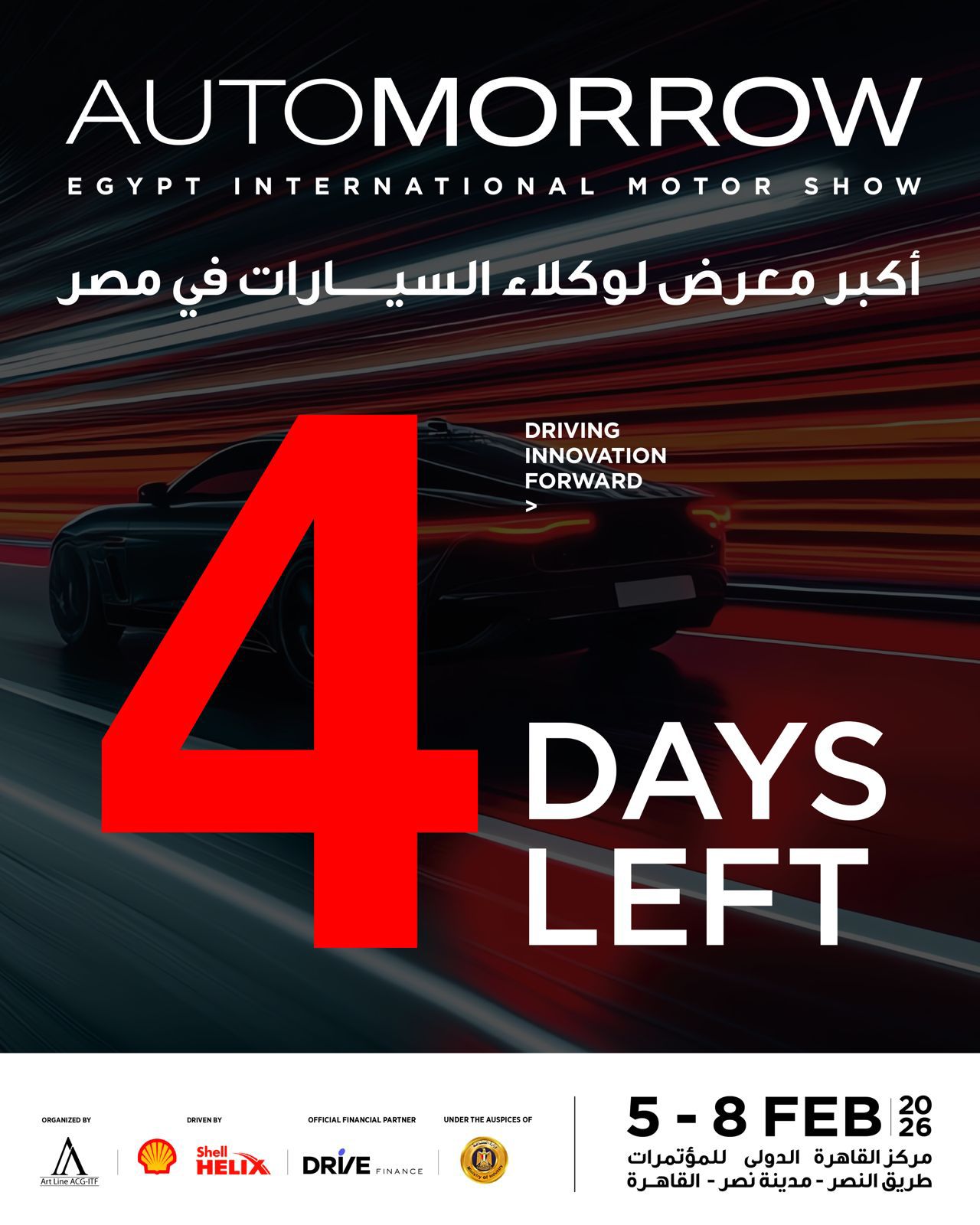 4 أيام فقط تفصلنا عن انطلاق أكبر تجمع لوكلاء السيارات الرسميين داخل معرض مصر الدولي للسيارات «أوتومورو 2026»؛ والذي يحظى باهتمام كبير داخل أروقة قطاع السيارات.