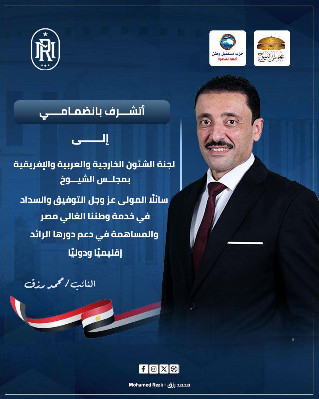 محمد رزق ينضم إلى لجنة الشؤون الخارجية والعربية والأفريقية بمجلس الشيوخ